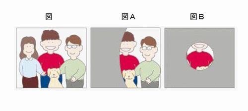 ひとことで視覚障害と言っても、さまざまな見え方があります。まったく見えない、文字がぼけて読めない、物が半分しか見えない(図A)、望遠鏡を通しているようにしか見えない(図B)などです。