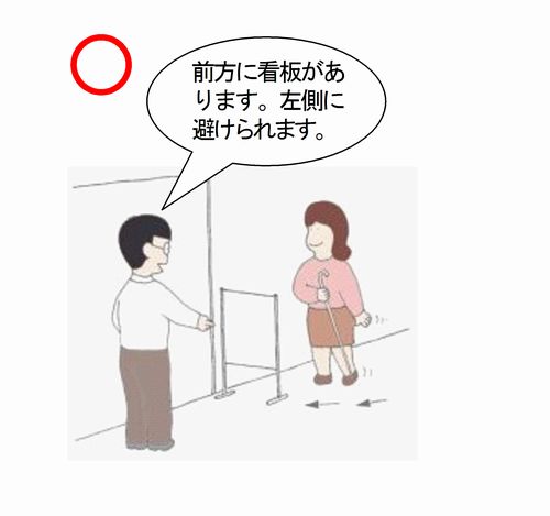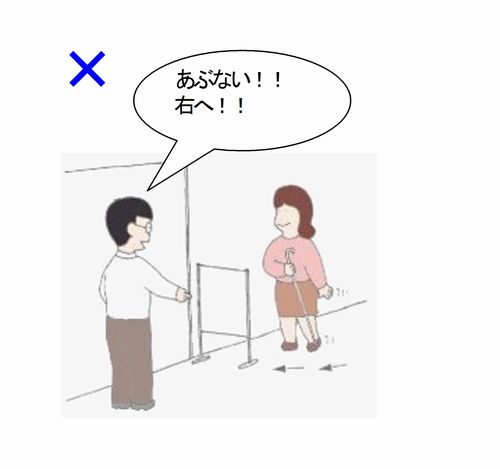 遠くから声をかけてもらっても、気づかないことがあります。援助を断られたとしても、気を悪くしないでください。慣れている場所にいる場合等、援助を求めていないこともあります。