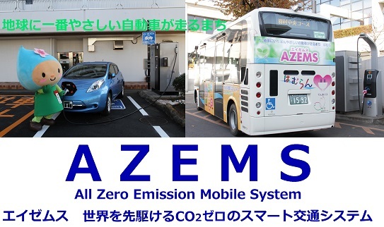 AZEMS(エイゼムス):All Zero Emission Mobile System(オールゼロエミッションモービルシステム)の頭文字を組み合わせた造語です。