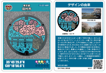 第3弾となるマンホールカードは「羽村の堰と桜」をデザインしたものです。