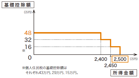 ・合計所得金額2,400万円超の場合、その金額に応じて基礎控除が段階的に減少または消失。