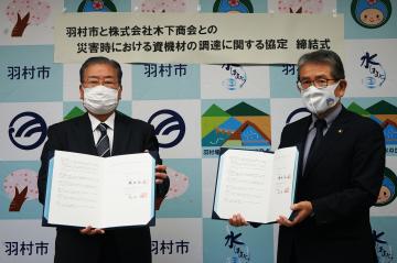 令和3年10月22日、株式会社木下商会との「災害時における資機材の調達に関する協定」を締結しました。