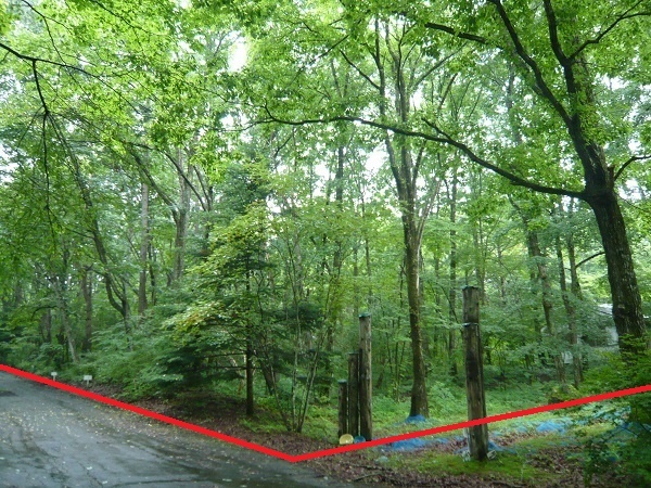 対象物件は、近隣を含めて別荘地の多い当該地域の中でも、土地形状、傾斜、日照、二方路の角地、中高木や灌木の自生状況など、比較的条件の良いものであると見受けられます。