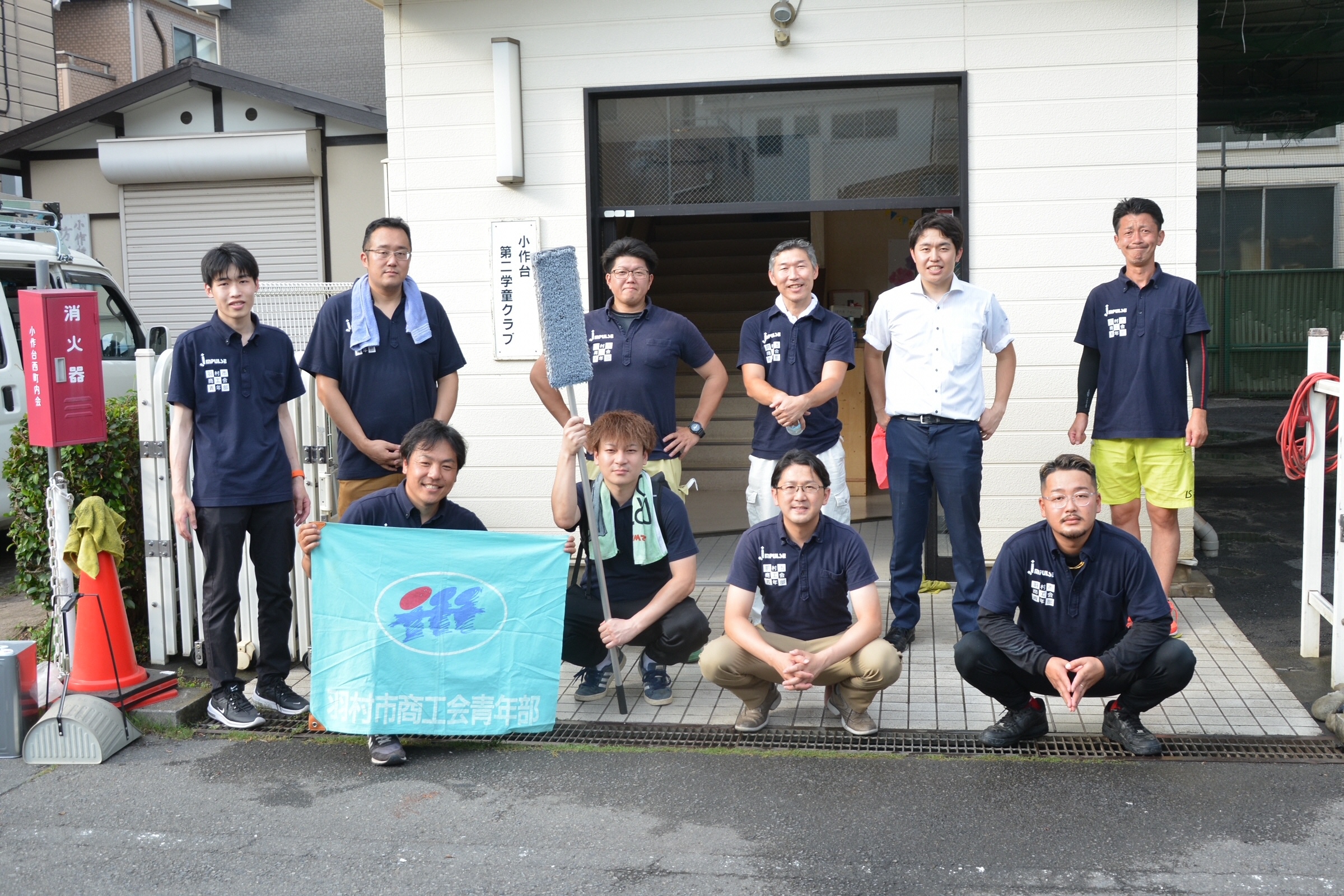 令和4年6月25日(土曜日)、気温35度の暑い中、羽村市商工会青年部の皆さんが「小作台第二学童クラブ」の清掃を行ってくださいました。