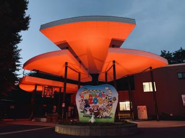 ヒノトントンZOOのエントランスを、認知症支援のシンボルカラーであるオレンジ色にライトアップします。