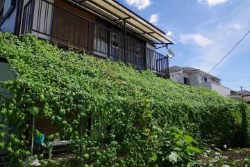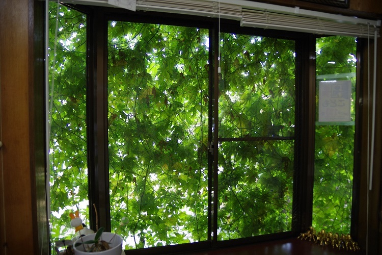 一言PR:今年は暑い日が多かったので水やりが大変でしたが、今年も立派な緑のカーテンが出来ました。