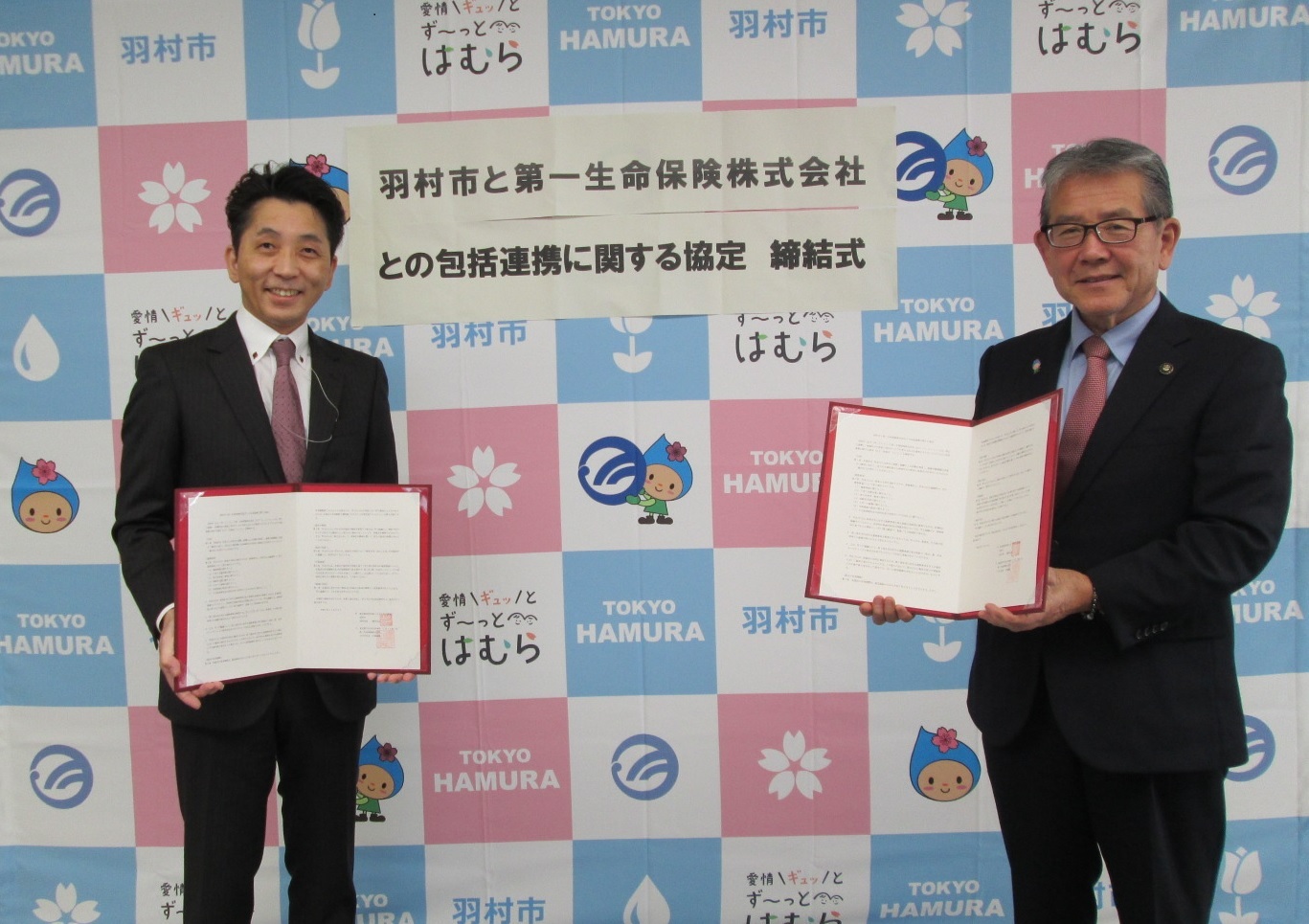 令和5年11月28日(月曜日)、羽村市と第一生命保険株式会社は、相互に連携し、地域社会の発展と市民サービスの更なる向上を推進するため、包括連携に関する協定を取り交わしました。