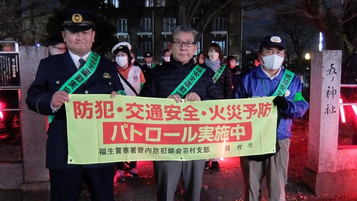 年末防犯・交通安全・火災予防パトロール週間の期間は、12月20日(水曜日)までとなっており、期間中は、各団体がそれぞれの地域でパトロールを実施しています。