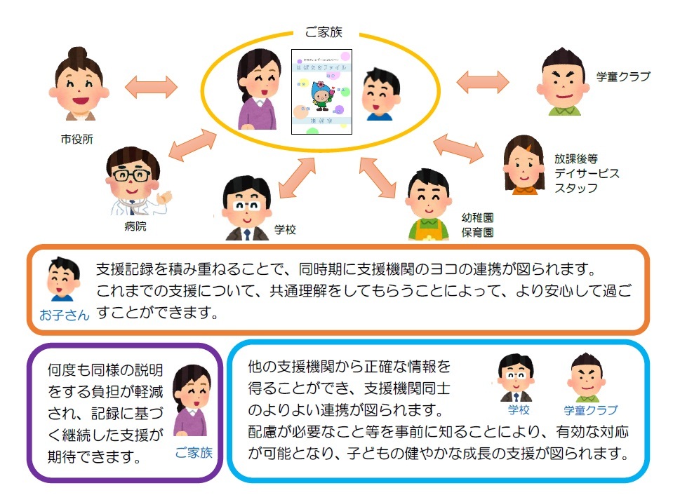 お子さんと関わる支援機関のスタッフが、他の支援機関の正確な情報を得ることで、共通理解でき、継続的で一貫した支援の提供がしやすくなります。