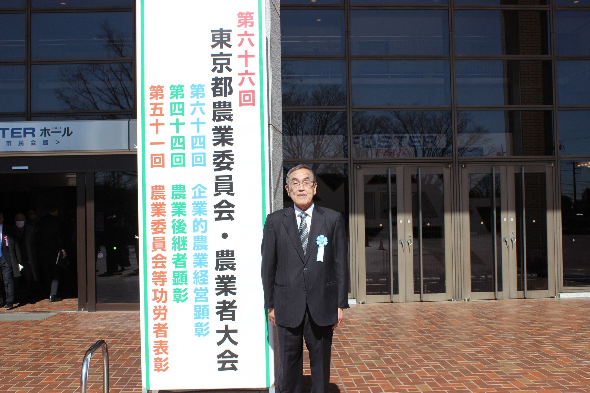 平成14年度から2期、計6年農業委員会の委員を務めるとともに、羽村市農業後継者クラブの設立にたずさわるなど、羽村市の農業振興に功労しました。現在も、羽村市内に複数所有する農地について、都市農業として、周辺環境に配慮した農業に取り組んでおり、農業振興および地域振興に寄与された功績が認められ表彰されました。