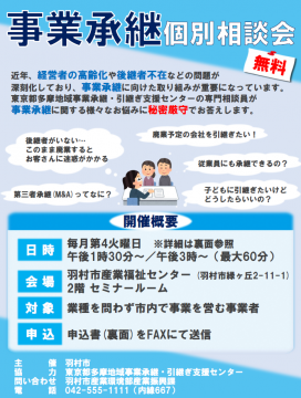 羽村市では、東京都多摩地域事業承継・引継ぎ支援センターと協力し、