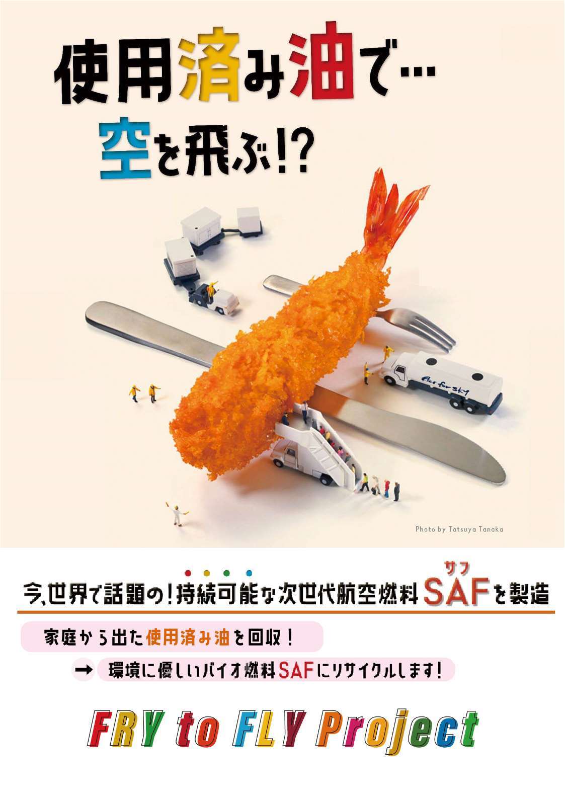 東京都は、持続可能な航空燃料(SAF【サフ】)の原料となる廃食用油を家庭から回収する事業(東京都廃食用油回収促進事業【FRY to FLY Project】)を実施しています。