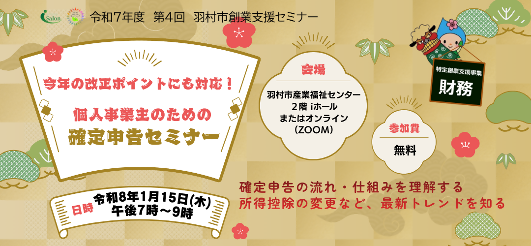 確定申告時期に慌てないためにも本セミナーを受けて早めに準備を進めましょう。