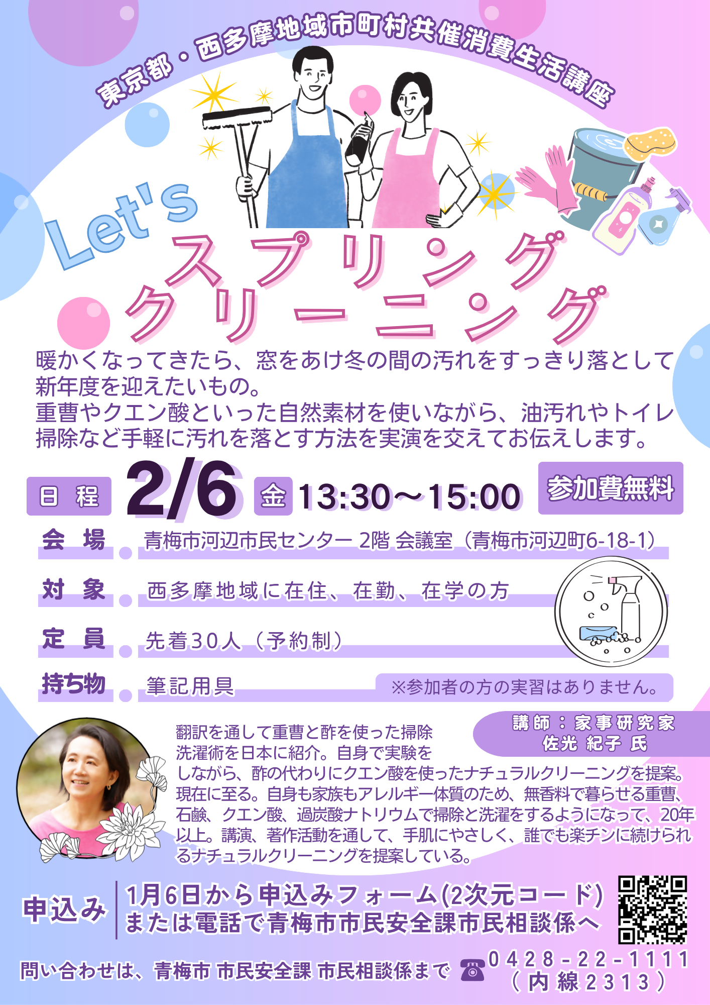 東京都と西多摩地域市町村(西多摩地域消費者行政事務連絡会)との共催講座として、令和7年度は2回の講座開催を予定しています。