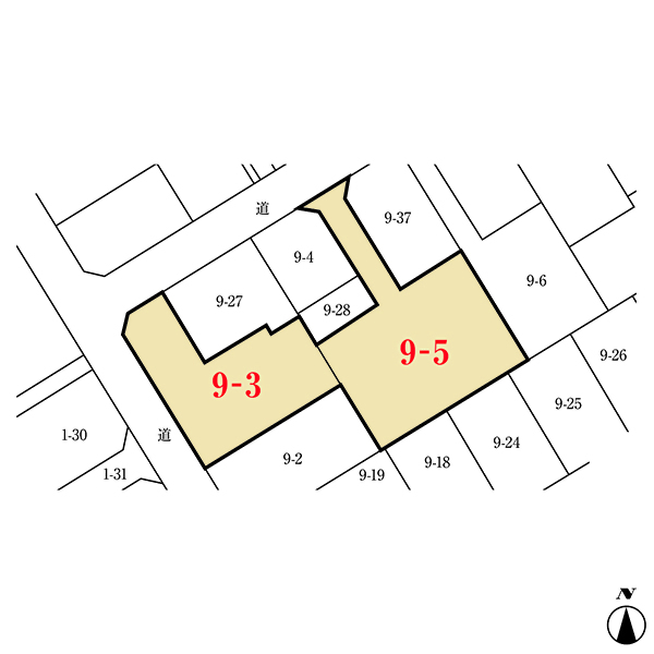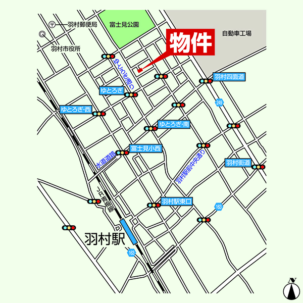 主に建物敷地側の北西側を幅員6メートルの市道(羽村市道2033号線)に約8メートル接道し、駐車場側の南西側を幅員6メートルの市道(羽村市道2027号線)約14メートル接道しています。