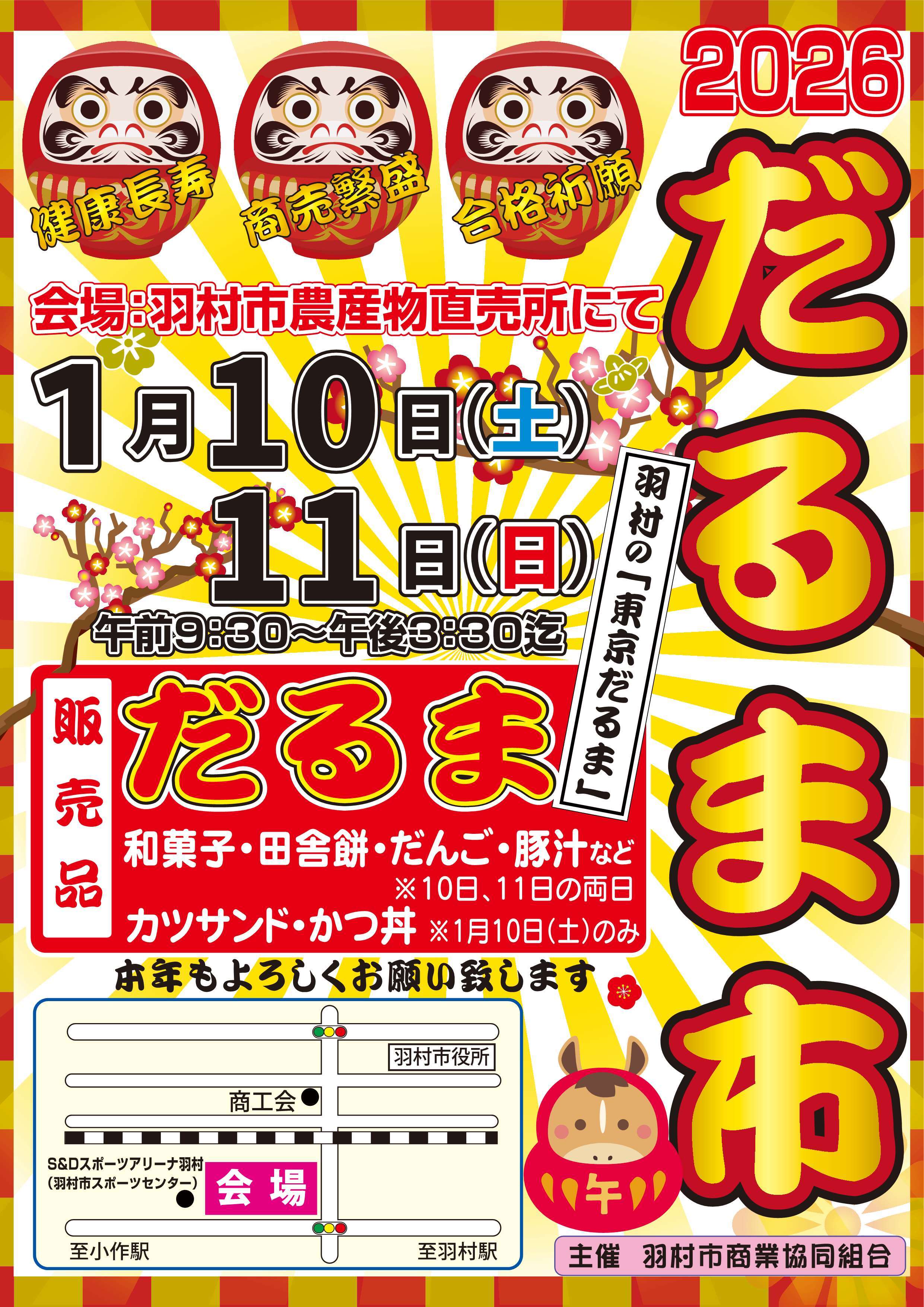 ぜひ、新春を告げる伝統行事「だるま市」へお越しください。