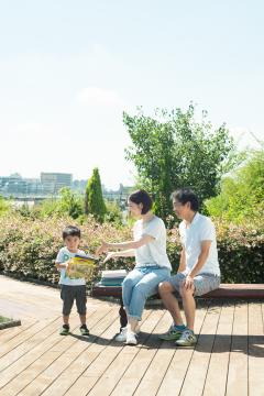 ・都心までそれほど遠くなくて交通が便利です。公園も多くて子育てするには最高の場所だと思います。週末は、子どもと一緒に図書館で借りた本を屋上で読んだり、生涯学習センターゆとろぎとの連絡通路から、車や景色を眺めたりして楽しんでいます。
