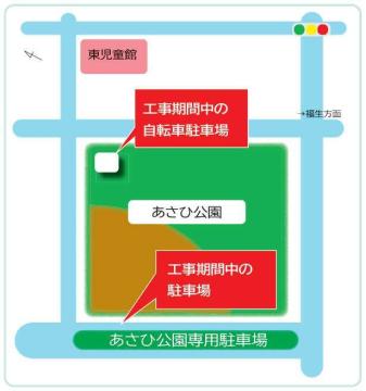 なお、工事は継続しておりますので、引き続き臨時駐車場・臨時自転車駐車場をご利用ください。