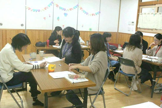 玉水保育園でのノーバディーズ・パーフェクトは、小さな子どもを持つ親10人がグループになり、週に1回2時間程度集まります。それぞれの悩みを共有したり、解決するためのプロセスを身に付けたりするために、楽しくリラックスして話し合ったりテキストを使ったりしながら、全6回のプログラムの中で自分に合った子育ての方法を見つけていきます。