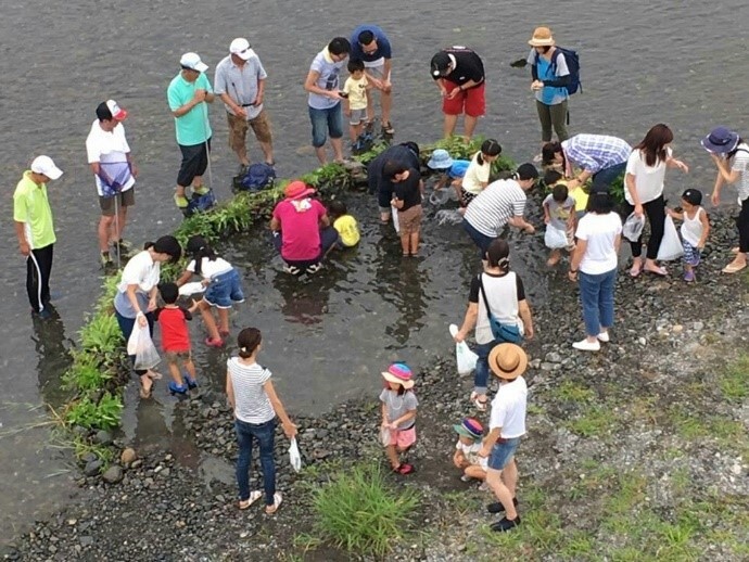 玉水保育園のそばの多摩川にて親子でマスのつかみ取り。父母OB会が主体となって開催しているそう